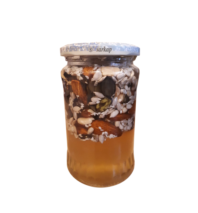 Miere de munte cu mix de semințe și nuci 480g este o combinație savuroasă și hrănitoare între mierea pură de munte și un amestec bogat de semințe și nuci atent selecționate. Recoltată din zone montane nepoluate, mierea are o aromă intensă, florală, și o textură fină, completată perfect de gustul crocant și ușor prăjit al nucilor și semințelor.